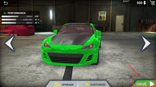 3、点击红框标注的驾驶按钮,驾驶跑车开始比赛。
