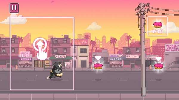 操作极其简单:轻点屏幕左侧即可跳跃,点击右侧的飞镖图标发动远程攻击。但别被简单的操作迷惑——关卡中危机四伏:甜甜圈可能被鸽子叼走,小怪兽会投掷寿司炸弹干扰你,甚至地形也会突然变化!关键时刻,只需按住屏幕即可触发子弹时间”,慢动作瞄准射击,精准收割美食!