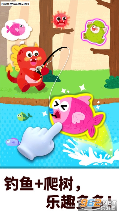 2、考验观察力的时候到啦,观察鱼的颜色和形状,帮喷火怪钓起需要的鱼,拨开草丛,寻找藏起来的柴火,鱼烤好后,要和朋友一起分享,把鱼喂给它们吃吧。