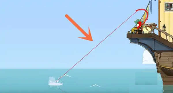 2. 抛竿后耐心等待浮标晃动,一旦有鱼上钩立即点击【拉竿】;