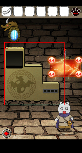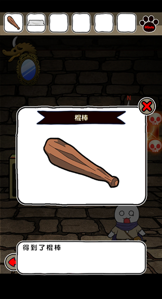 3、继续向右两次,来到镜子房间,将黄色宝石嵌入飞龙图案的黄色盒子中,打开底座获得「棍棒」。