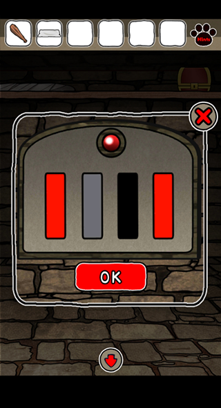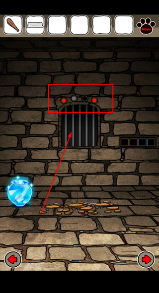 6、在天平后方石板上按顺序输入颜色密码:红 → 灰 → 黑 → 红(线索来自铁栏杆房间上方宝石颜色),即可获得第二颗黄色宝石。