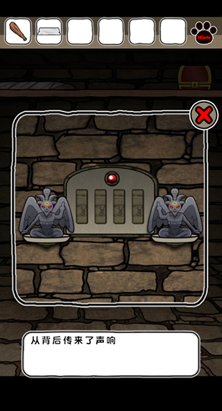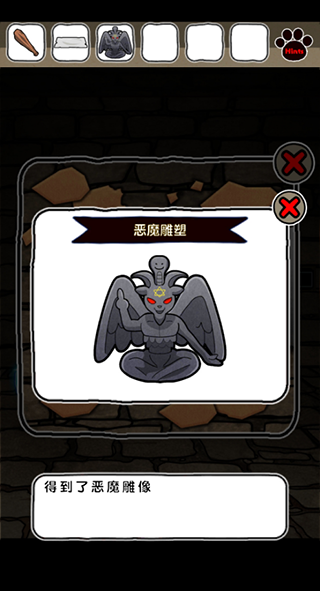 4、返回铁栏杆房间,用棍棒击碎地面两个罐子,打开地板暗门,获得「恶魔雕塑」。