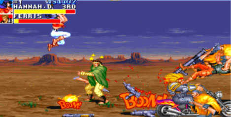 第三关:中部沙漠 不坐车几乎无法按时通关;BOSS骑摩托被挤出屏幕左端后晃动车辆,可触发天女散花”式雷爆BUG;干掉BOSS时新出现的摩托兵会犹豫后灰溜溜逃跑。