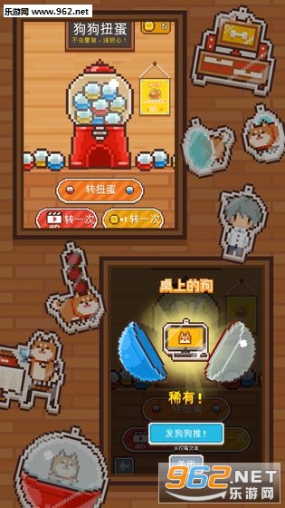 还包含收集要素,有各种狗狗的可爱像素图可以通过扭蛋方式获取