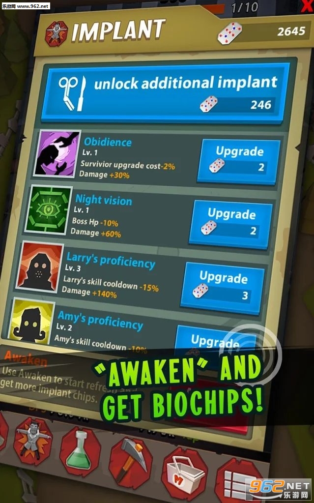 僵尸是免费的,点击者的风格,简单的RPG。杀死你完全武装幸存者的僵尸。升级在实验室自己的技能。在survivors.Tap植入生物芯片的速度越来越快,以使幸存者打难当!