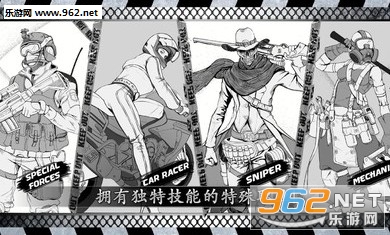 先从4种职业 特种兵/赛车手/狙击手/技师 中,选择一个职业并进入战斗地区。 (个职业都有自己的技能和特性)