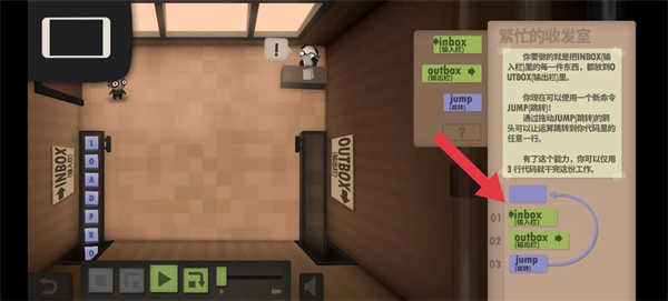 1、不少新手在第四关遇到瓶颈,其实只需按照下图所示顺序添加指令:先取输入,再送输出,最后循环处理直至完成。