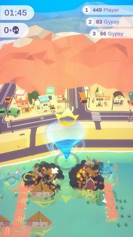 1.画面风格简洁明亮,而且场景一目了然,无处可躲,而玩家的目的就是摧毁整个城市的同时吞噬其他的玩家;