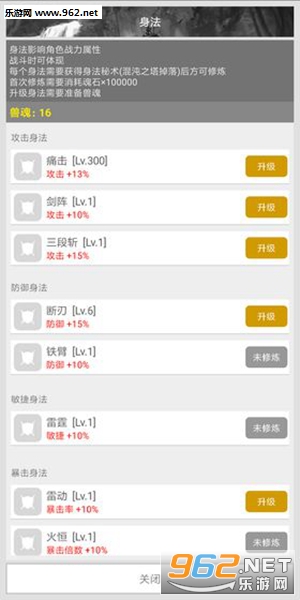 2、在黑市中购买各种功法秘技学习,游戏中功法分为多种,攻击身法、防御身法、敏捷身法等等,还可以提升身法的等级。