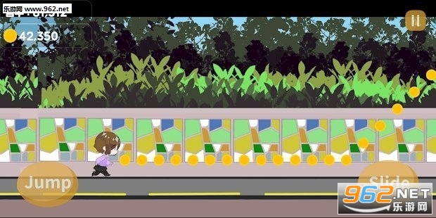 2、游戏的玩法非常简单,只有两个按键就足以控制主角进行跑酷,向下翻滚和跳跃键,你要学会使用这两个按钮对付后面遇到的障碍;