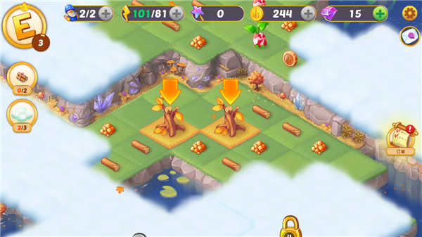 2、体验层层进阶的合成乐趣:把散落的木头合并成温馨小屋,再将小屋升级为气派豪宅,见证一砖一瓦的成长奇迹。