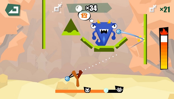 1、奇形怪状的地图设计,各种各样的机关,玩家需要计算物理弹射的线路,能不能打中怪兽