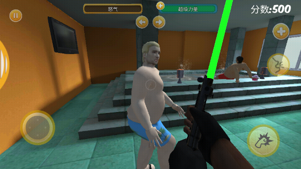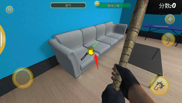 5、此时角色怒气值迅速上升,再次按下门铃闯入房间,拿起武器将邻居一击制服。
