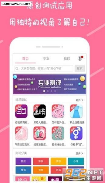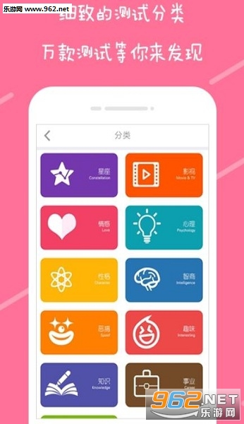 1、软件下载就可以使用,用户可以在众多的测试分类中做出选择,挑选自己想要测试的一个话题,多种多样的测试话题可以满足所有用户;