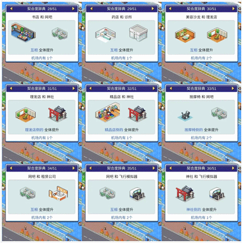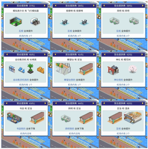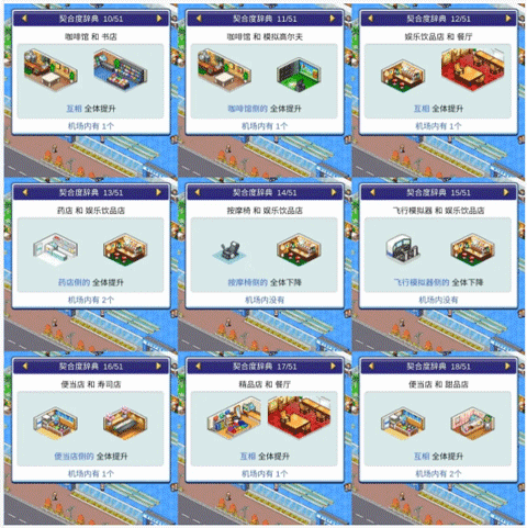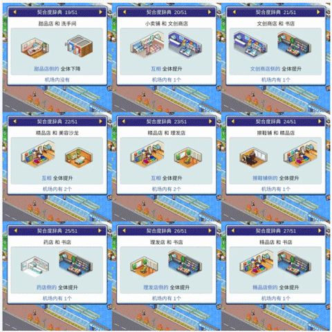 想要高效运营机场,必须掌握不同店铺与设施之间的相性关系。合理的搭配能显著提升顾客满意度与收益效率。以下是详细的相性对照表,帮助你科学规划空间布局。