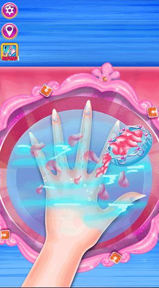 2、将下方工具栏中的护理产品逐一拖动至手上,完成清洁与滋润流程;