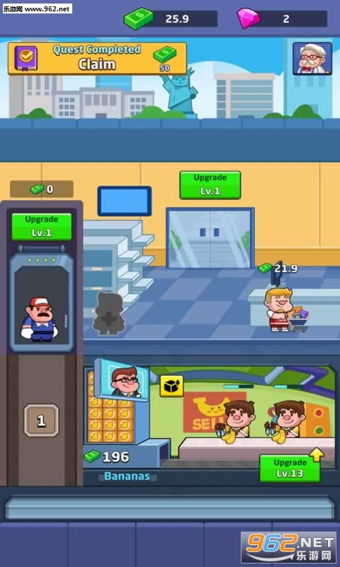当玩家赚到20美元时,即可升级超市,游戏收益逐渐变多,当超市级别最高时,你就是一名合格的老板了