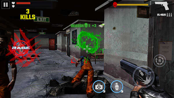 2、点击射击按钮即可对准目标开火,精准命中僵尸头部可实现快速击杀,提高效率。