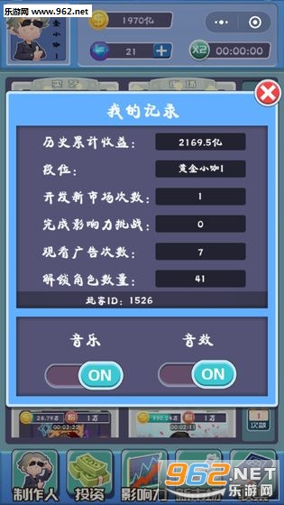 这是一款放置模拟经营类游戏。在游戏中,玩家扮演的主角不甘平庸,成立一家经纪公司。经过不懈的努力,他最终站在娱乐圈的顶端,并决定给更多人机会,让每个人都可以成为大明星!
