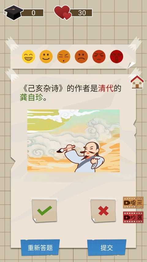 在游戏中,玩家需通过完成各类学科题目来推进进度,涵盖数学、语文、文学、音乐等多个领域,每一道题都是一次脑力激荡的考验。游戏采用轻松诙谐的卡通画风,操作直观明了,只需点击选择即可参与答题。答对可增加学分与亲情点,答错则会被扣除相应数值。学分是升级的关键指标,必须达到指定分数才能进入下一阶段或升入下一年级;亲情点则是游戏的生命线,当学分不足时,可用双倍亲情点进行补足,策略性十足。这种机制不仅增强了游戏的紧张感,也让人在娱乐中反思现实中的教育压力。更多益智小游戏等待解锁,边玩边提升逻辑思维与知识储备,寓教于乐,乐趣无穷。