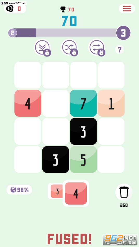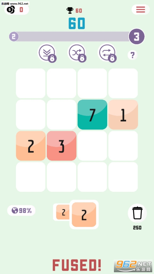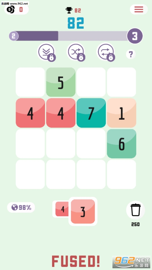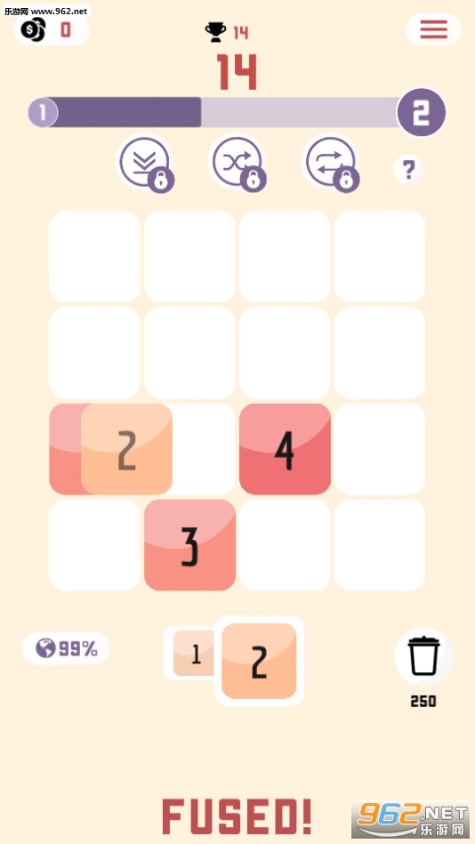 《融合数字安卓版》这是一款玩法非常经典的数字结合类休闲闯关手游,游戏中,想方格中不断填入数字,在相邻的方格中填入数字相同的方块即可融合成为数字加一的新方块,方格只有这么大注意数字填充的位置选定。