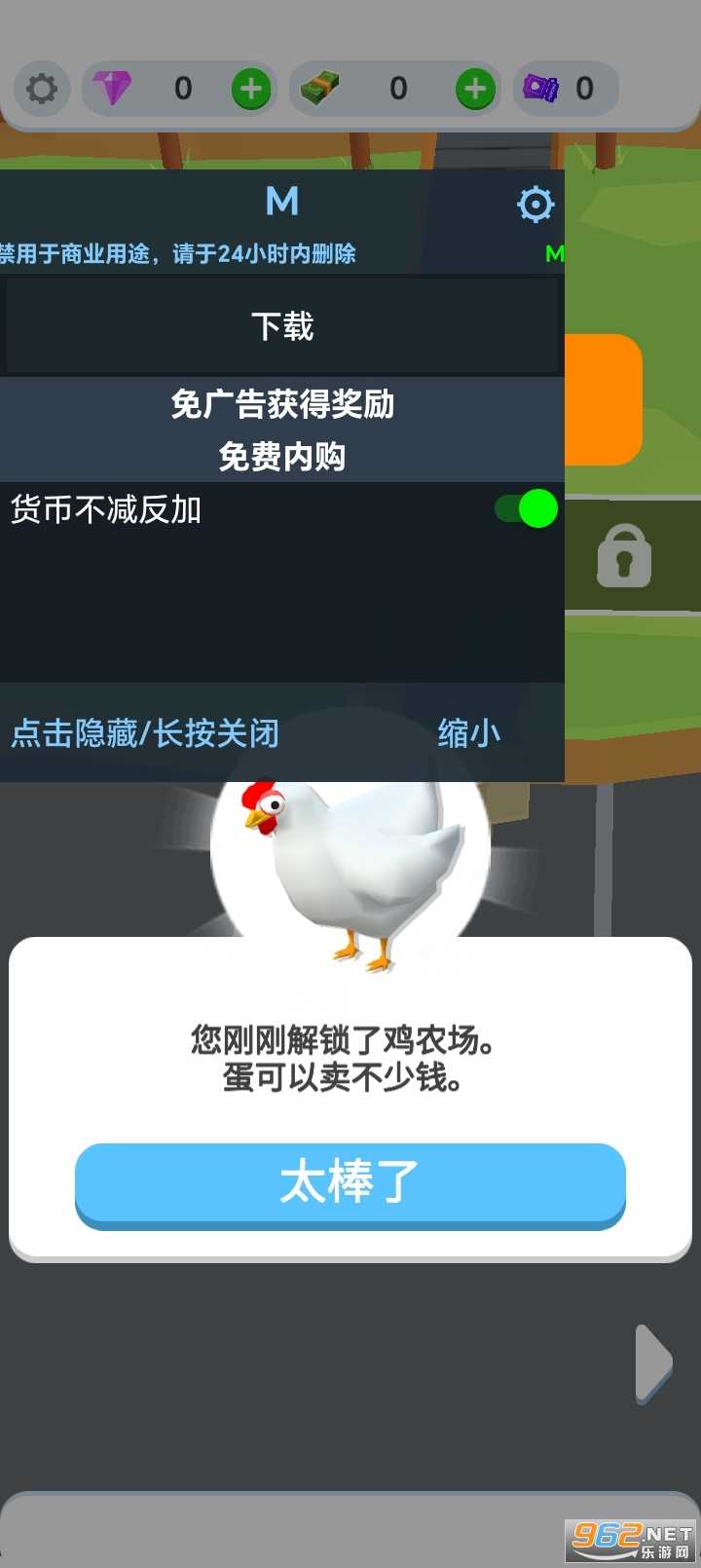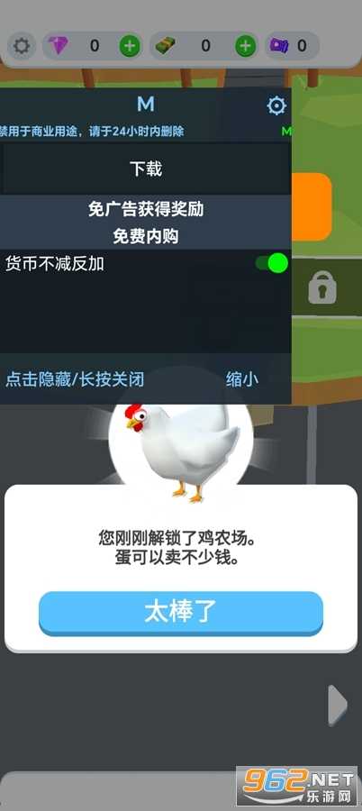 在本页面下载的鸡蛋工厂大亨破解版如果没有悬浮窗就是没有给悬浮窗权限