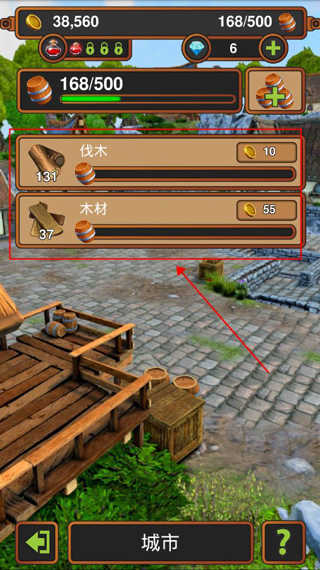 游戏中我们可以城堡来进行各种能量提升~(房产大亨,袋子金子,削尖斧,伐木大师,推销员等等各种能量)。我们花费一定的金币,可以进行各种资源受益的建筑的扩充~(可同时生产多个物资),我可以对我们的建筑物进行产品升级,来获得更多受益的提升。