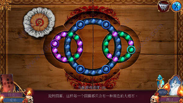 总结:规则就是小圈调整好位置,转动大圈来进行置换红绿玻璃珠。