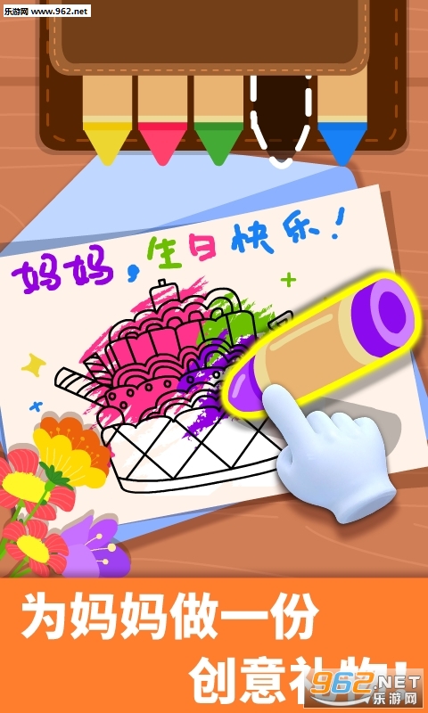 给妈妈准备生日礼物。挑选鲜花,制作贺卡,换上桌布,摆好餐具,吃蛋糕咯!