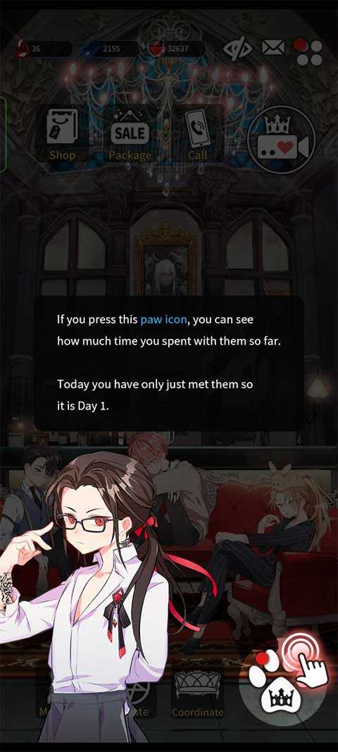 1、点击界面中的爪子图标,即可查看你与每位角色之间的互动时长记录。
