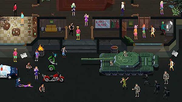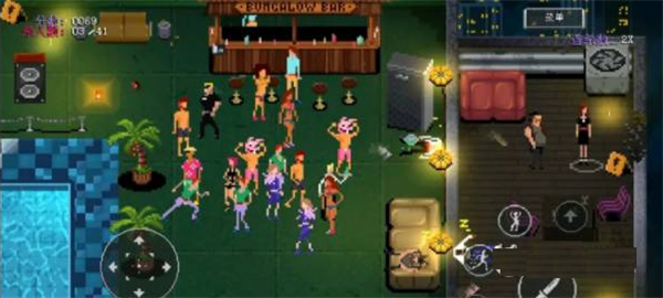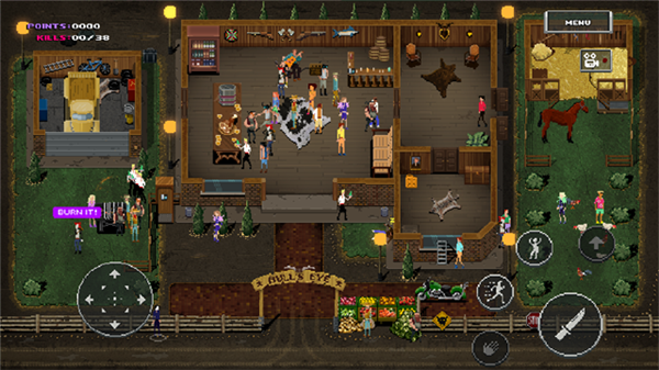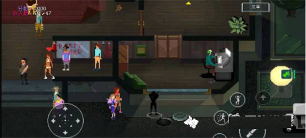 剧情发生凌晨三点的豪宅当中,或许是物主过于富有,在如此深夜里还招呼了一大帮人前来举办派对。而玩家扮演的主角并非这座豪宅的主人,而是一个被巨大的噪音惹怒了的愤怒青年。究竟个青年准备做什么呢?于是乎,我们的主人公决定游走于豪宅的各个房间,利用不同地方式不断杀人。而正是这种黑暗的又充满现实感的主题恰好抓住了无数玩家的心。玩家在游戏中要小心的谋划,通过观察每个人的位置,在不同的房间用不同的手段将他们消灭,并注意不要被警察抓到。