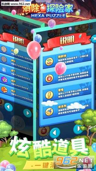 消除探险家游戏是一款充满趣味的三消游戏,在游戏中将展开一场小蜗牛的探险之旅,与六边消除展开美妙的碰撞,用你充满智慧的大脑巧妙的展现消除技巧,多种关卡的挑战,与小伙伴进行一场精彩的角逐,携手度过难关,熟练的掌握其中规则,解锁更多的道具。