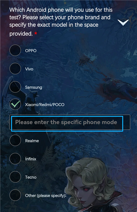4、选择进行测试的手机型号,并填写详细型号。