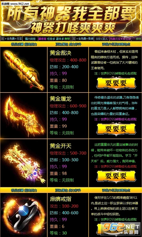 4、加快了升级节奏的超爽福利版,不仅是加强了赠送,在副本产出方面也做出调整,只为兄弟玩得爽,砍得爽,绿得爽,我们豁出去了。