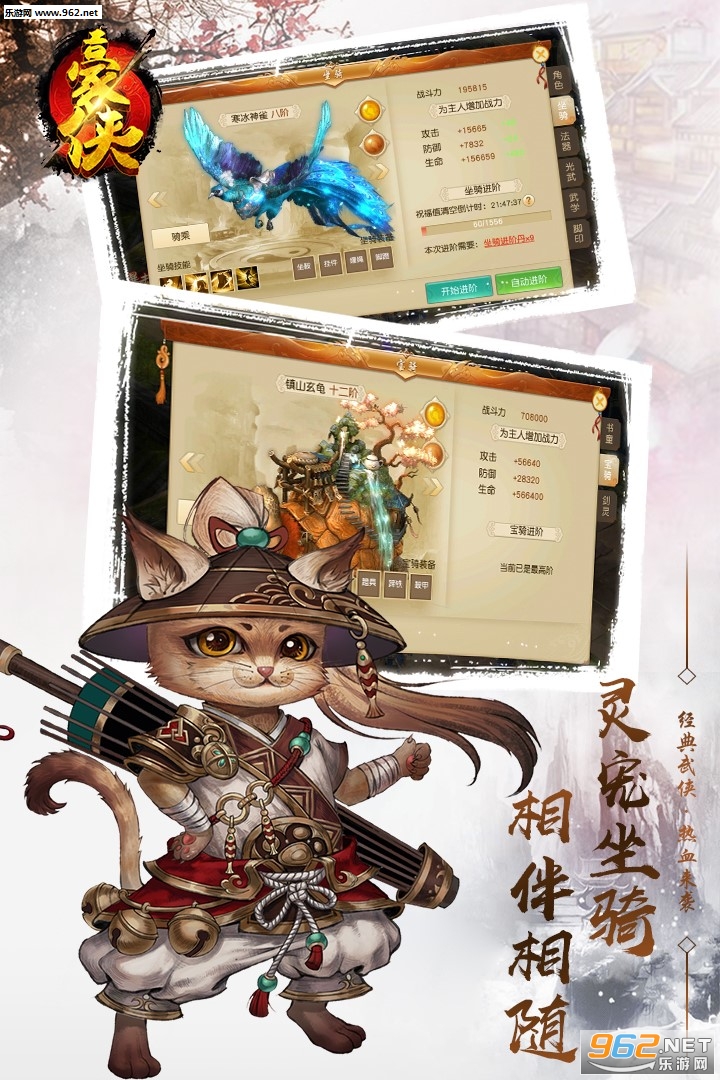 3、萌宠坐骑陪你一同战斗,炫酷外观随意打造,华丽技能满屏绽放;