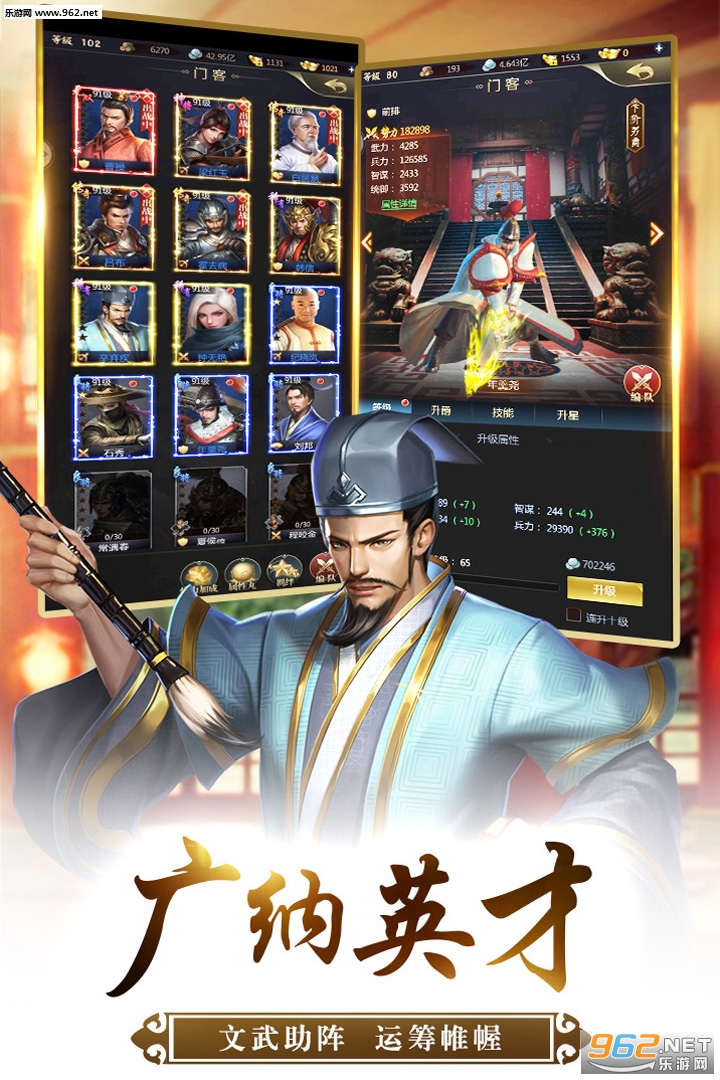 2、四个属性中最重要的是武力,因为在攻打关卡时你的武力值越高,损失的兵力就越少,所以前期新人们不用急着打关卡,先把武力强化上去再打不迟。