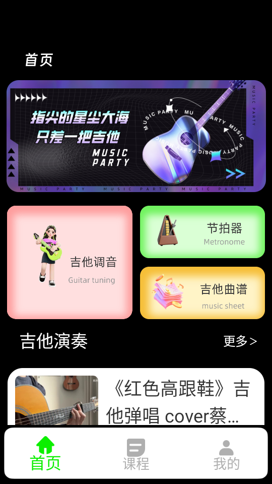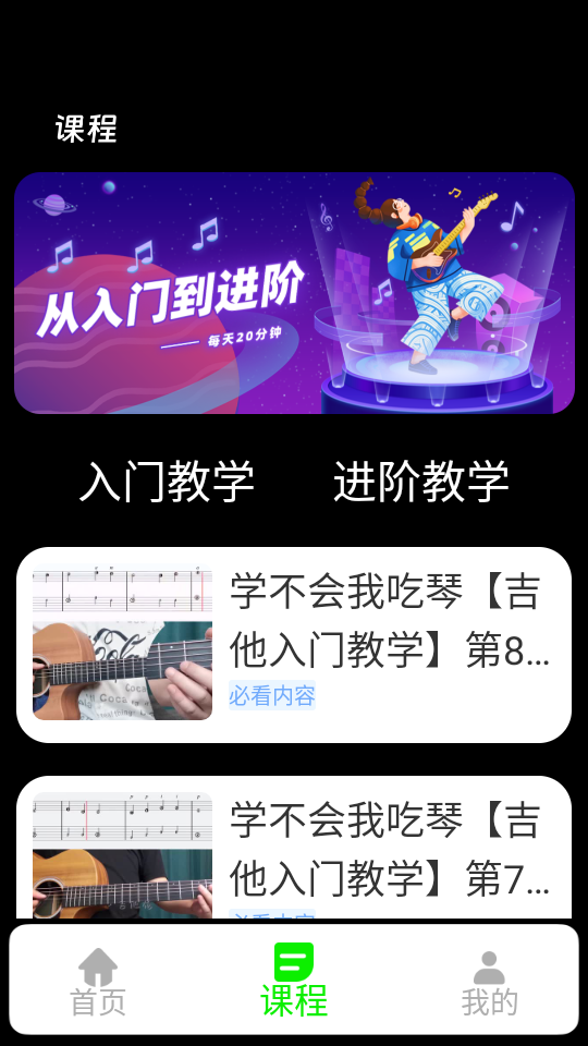 4、切换至底部菜单中的课程”选项,即可浏览从基础指法到进阶技巧的全套教学内容。