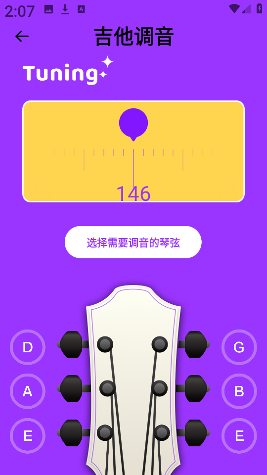 3、根据所使用的吉他类型及需要调整的琴弦,点击对应弦位开始自动识别音高。