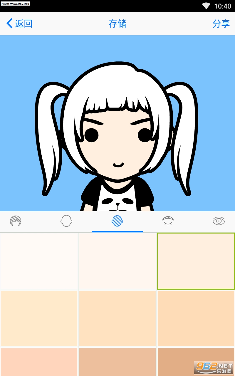 2、接下就是你设置你喜欢的萌图样子吧!可以选择发型,发色,脸型,肤色,眉毛,眼睛等等这一些的设置,本人对萌了解不是很深所以就一一演示了。