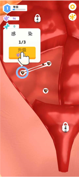 设施各具特色,有的擅长单体攻击,有的则擅长群体控制。玩家需要合理布局细胞塔防设施,巧妙搭配不同类型的细胞,以应对不同种类的病毒和细菌。在某些版本中,玩家需要控制病毒或病菌,通过连接和升级它们,不断攻占人体内的更多领地,最终占领整个人体。
