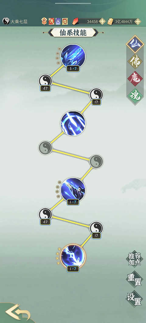 练气大圆满可以可以重置天赋,选着佛一,佛二,剩下的优先将生命点到40级。然后点佛三佛四。可以在筑基和金丹期完美度过。