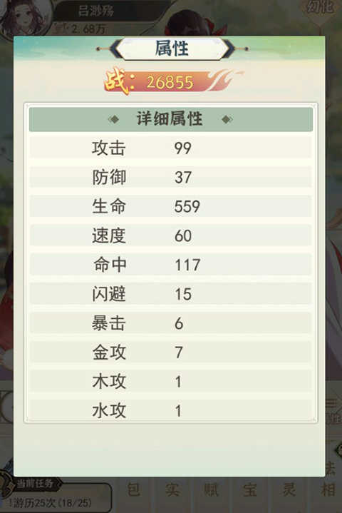 2、法宝升级优先升级修为法宝,因为游戏里太白的获取很少,所以有些法宝可以不升级。