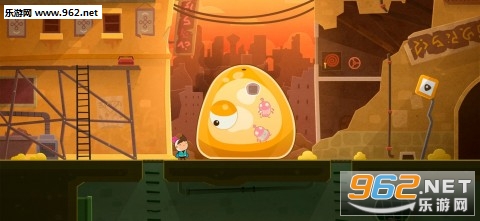 Love you to bits的游戏玩法和机械迷城有类似之处,这点在关卡2中得到佐证。面对这个巨大的外星生物,小伙伴们要首先通过左侧的楼梯来到高台上,拿到铁棍。