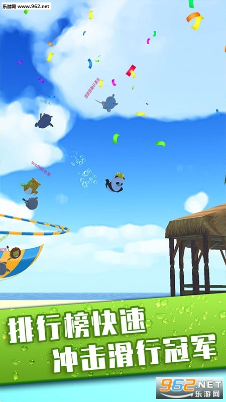 在游戏里你将扮演一个Q萌可爱的动物形象,萌萌哒炒鸡魔性!在连绵起伏的游乐园滑梯上和其他小动物展开一场无尽大冒险,需要灵活的滑行操作才能越战越勇勇往直前!游戏玩法与“滑路”相似,在水上乐园上进行比赛,在激流湍急的滑梯上穿梭滑行,成为最快到达终点的玩家,体验到io类游戏的竞技乐趣。你需要控制小动物从长长的滑梯上向下滑动,操作十分的简单,但是游戏的节奏超快。丰富的增益道具可以全方位提升角色性能,更激烈的角逐!