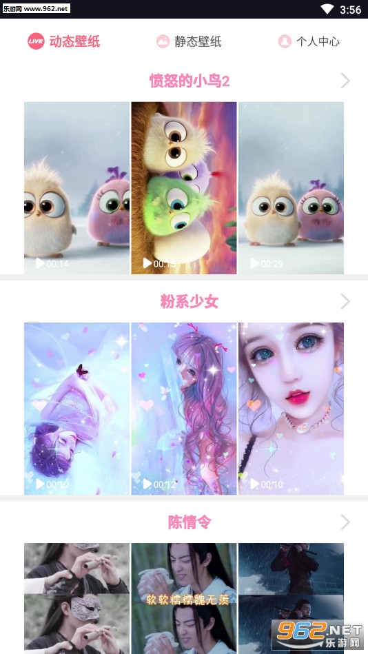 《动态墙纸app》是一款手机壁纸桌面软件,软件有着动态视频壁纸和静态壁纸,朋友们可以选择自己喜欢的分类来进行挑选,有着众多抖音热门壁纸更新,节日、电影电视、明星、卡通人物、文字等众多精彩的视频壁纸等着你来选择。