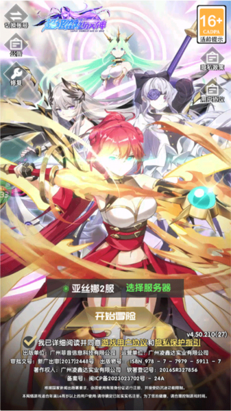 1、打开超级雷电战神手游,登录账号并选择游戏区服,点击开始冒险进入游戏;