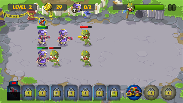 特种僵尸小队是一款同样有趣的且非常考验玩家战术的策略塔防类的游戏,游戏的主要玩法就是射击僵尸防止他们进攻,该作带领玩家们体验全新的作战体系,玩家需要在游戏中招募各种强大的英雄,组建你的队伍,开始趣味的射击闯关之旅,操作简单上手容易,自动瞄准僵尸射击,游戏内还加入了3种不同的战场辅助技能,可以有效的化解战斗危机,从而保证队伍的稳定输出,而在作战单位系统中,玩家可以用战斗中的战利品来针对某些兵种进行属性强化,相应的为了增加奖励的纳入。
