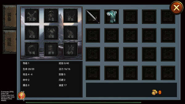 4、点击背包图标,装备初始武器与防具以提升战斗力;