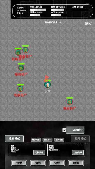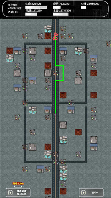 除了应对丧尸威胁,还需关注角色饥饿值、口渴度与疲劳程度,合理安排进食、饮水与休息时间,避免因状态下滑陷入绝境。